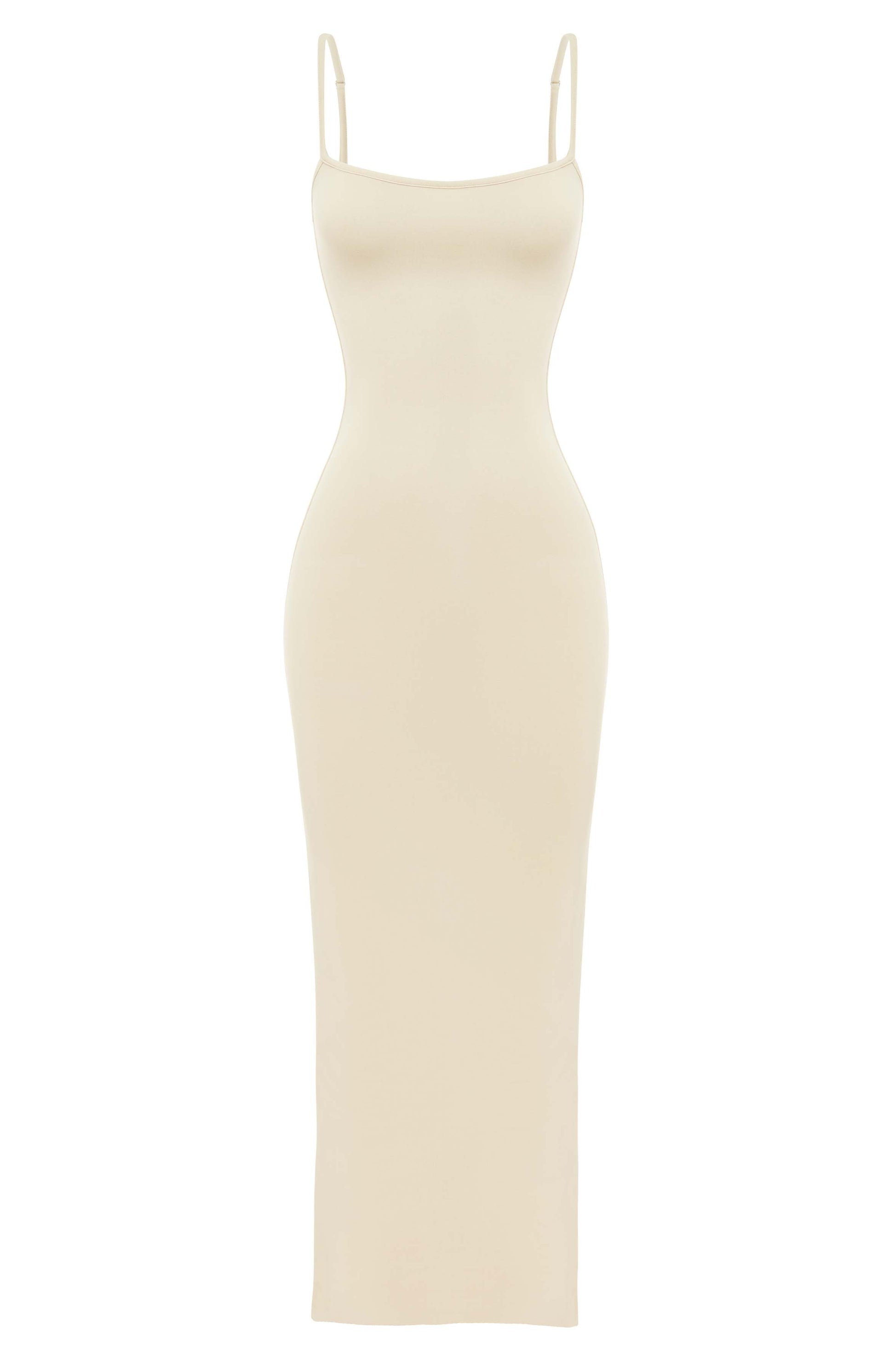 Prepárate para los cumplidos con el nuevo maxi Saskia, parte de nuestra selección elevada de básicos de los que no podrás prescindir. Nuestro tejido suave como la mantequilla, ajustado al cuerpo, está forrado doblemente para una sensación de ajuste perfecto, ofreciendo una comodidad máxima que es ideal para relajarte en casa o para fiestas de fin de semana. Este diseño simple se completa con tirantes y un elegante escote redondo.